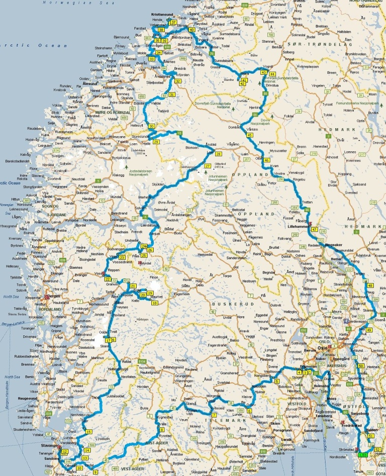 Map of my 2 week route in the rental car