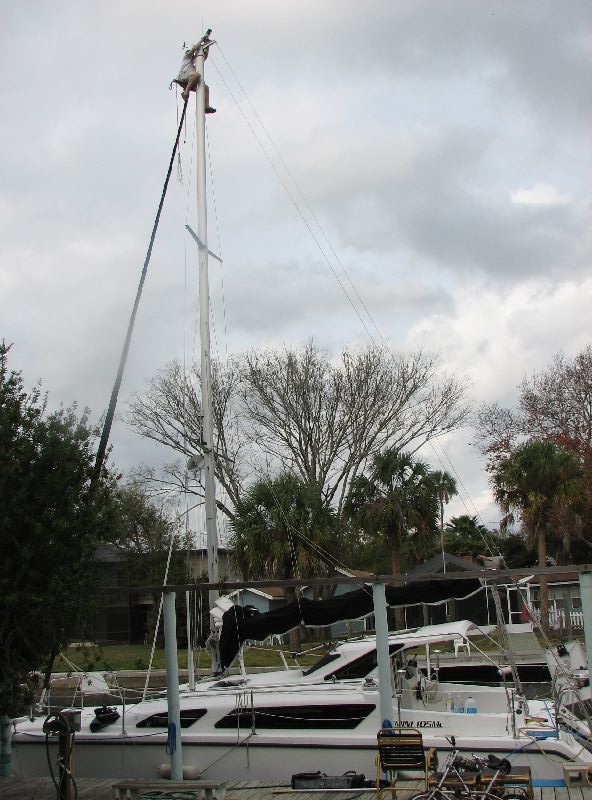 I had to replace a burned out anchor light bulb before I left. Roy hoisted me up.