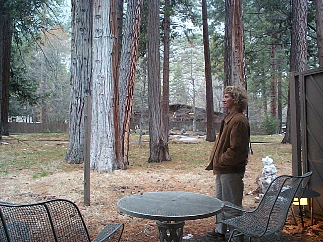 This is a picture of Bonnie standing outside our room at the Yosemite Lodge. There are alot of giant Sequoias in the park.