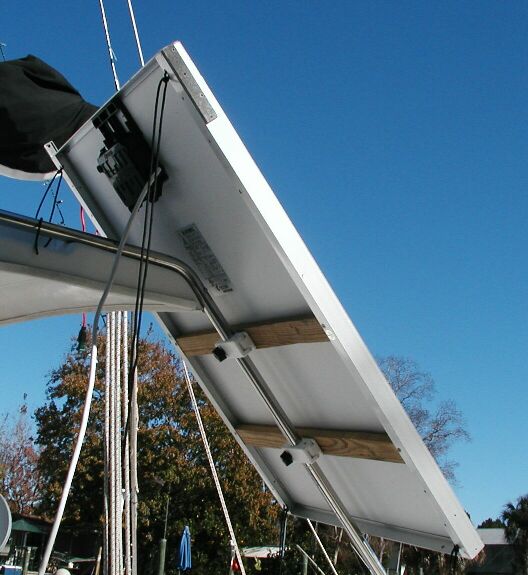 Back of solar panel has 1" starboard clamps