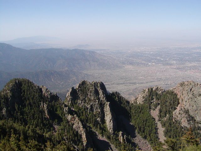 Sandia peak looking at Albuquerque. Taken just before I tore up my nose on a tree branch, 15 stitches. Pictures of the cut nose are only available by request